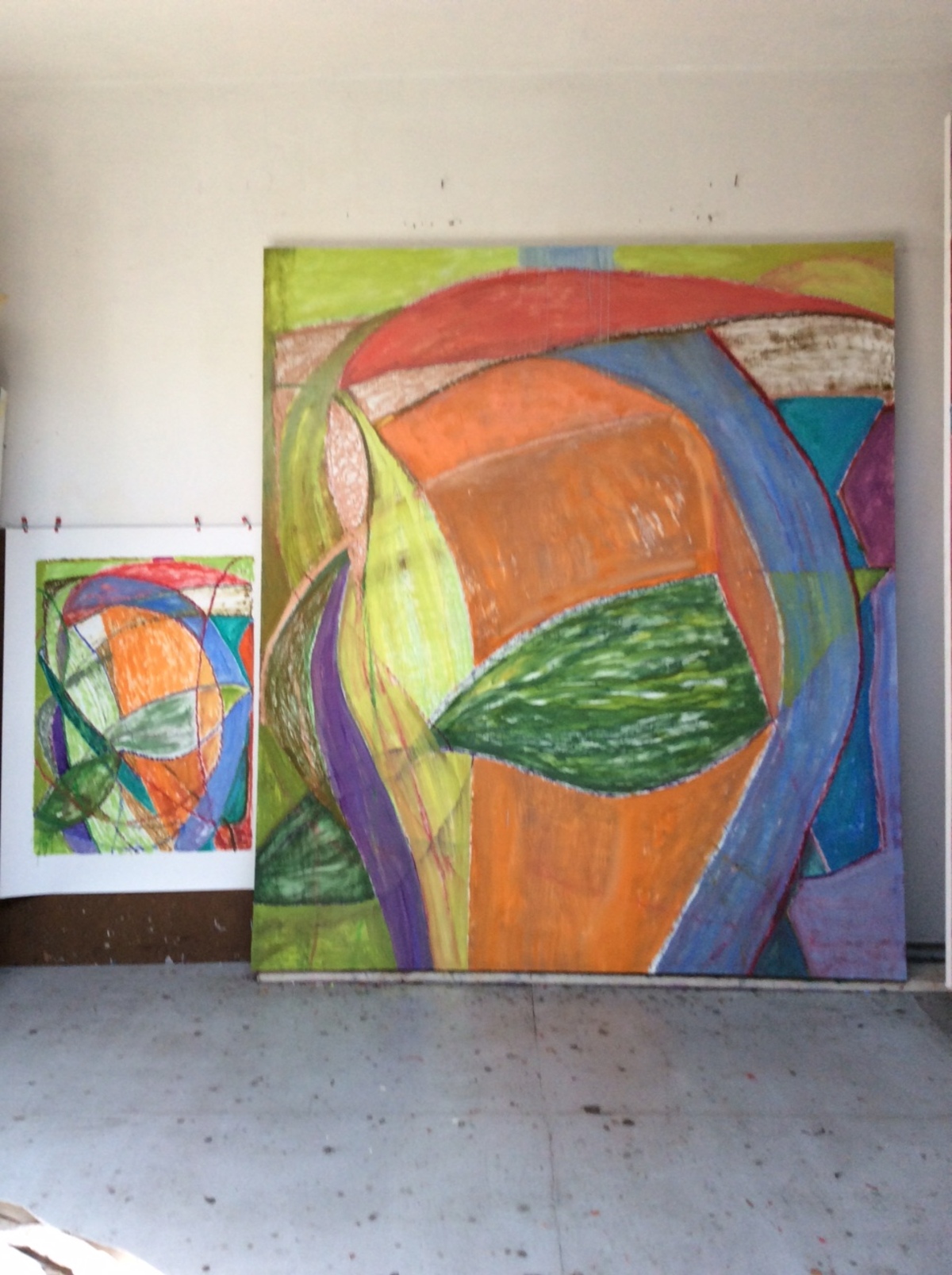 2. Behemoth with a seven-foot painting and two drawings: an Earthslide and oil on paper, Flame Pond (for Japan)